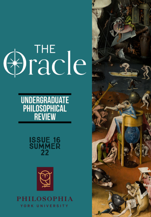 No. 14 (2020)The Oracle is York University’s undergraduate philosophical review journal, recognized by the American Philosophical Association (APA). It is published once a year with the efforts of York University’s Undergraduate Philosophy Student Association (Philosophia), York University’s Department of Philosophy, and York University’s printing services. The journal’s primary aim is to promote philosophical discourse on campus, especially among undergraduate students.